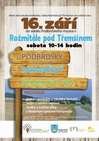 Podbrdský farmářský a řemeslný trh v Rožmitál pod Třemšínem, koná se v sobotu 16.9.2023, a to ve venkovním areálu Podbrdského muzea od 10h do 14h (možnost prodloužení akce dle zájmu). Na akci najdete místní i přespolní výrobce šperků, keramiky, likérů, medu, sirupů, různé dekorace, dobrot, oblečení a mnoho dalšího. Akce je doprovázena živou hudbou, ukázky řemesel. Možnost výborného domácího občerstvení nesmí chybět. Přijďte si posedět u příjemné hudby, nakoupit či se jen inspirovat zajímavými výrobky. Budeme se na vás těšit tedy v sobotu 16.9.2023 v Rožmitále pod Třemšínem.